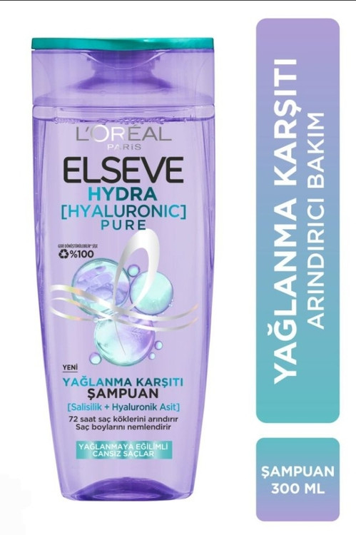 شامپو لورآل مدل هیدرا پیور هیالورونیک برای موهای چرب 300 میلی لیتر