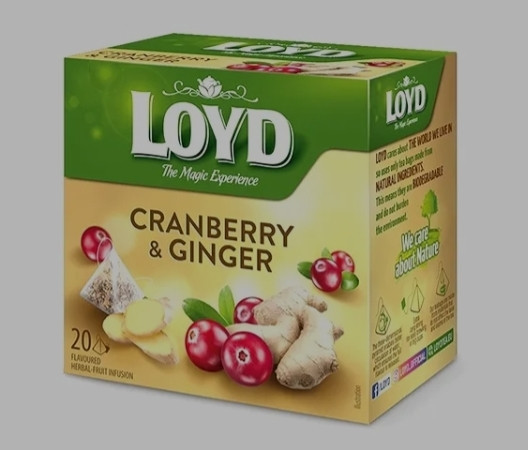 دمنوش کرنبری و زنجبیل 20 عددی لویدLoyd Cranberrry and ginger flavoured infusion 20 tea bags