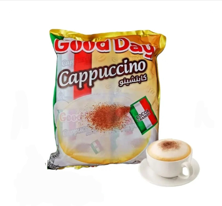 کاپوچینو گوددی Good Day (30 عددی): یکی از پر فروش ترین محصولات برند گود دی کاپوچینو های فوری حاوی شکر این کمپانی میباشد، که در پشته هر بسته بندی خود، داری پودر کاکائو بوده که هم طعم خوبی را در نوشیدنی شما ایجاد می نماید و هم برای دیزاین روی فنجان حاوی نوشیدنی خود میتوانید از آن استفاده نمایید.