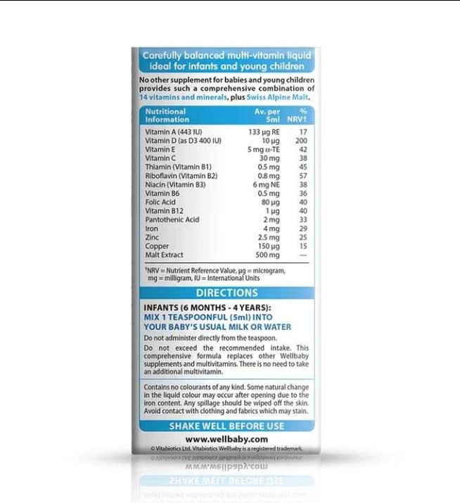 ویژگی های شربت مولتی ویتامین کودکان 6 ماه تا 4 سال ول بیبی ویتابیوتیکس