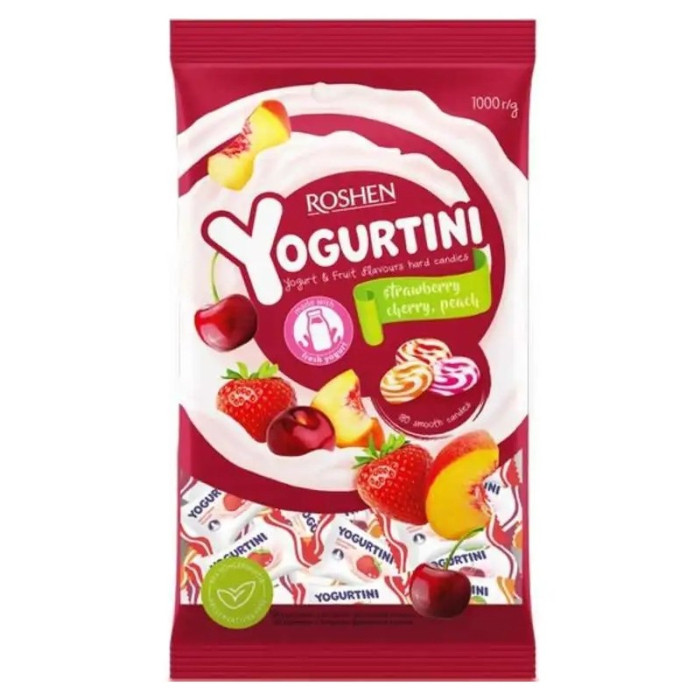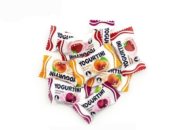 آبنبات ماست میوه ای در سه طعم مختلف یوگورتینی روشن بسته ۱ کیلوگرم