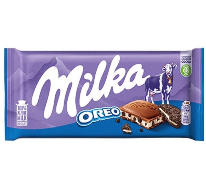 تابلت شکلات شیری با تکه های اورئو 100 گرمی میلکا