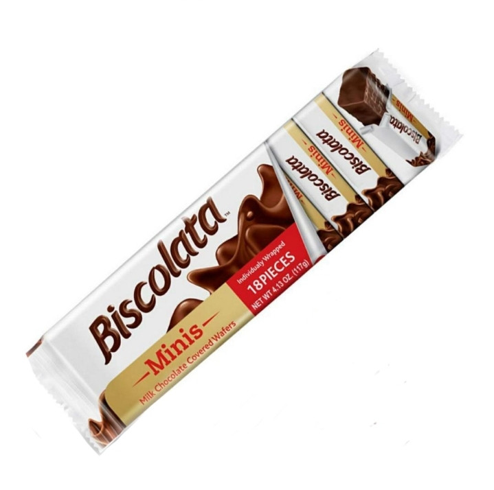 ویفر با مغز کرم فندقی و روکش شکلات شیری 117 گرم(بسته ۱۸عددی) بیسکولاتا مینیس Biscolata minis