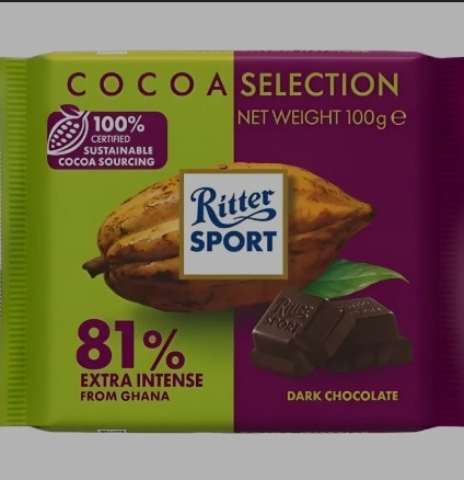 شکلات ریتر اسپرت با شکلات تلخ 81% Ritter Sport 81% Extra Intense From Ghana وزن 100 گرم