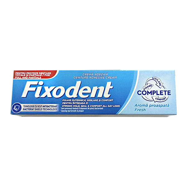 چسب دندان مصنوعی فیکسودنت آبی کمپلت complete برای چسبیدن دندان های مصنوعی به فک در هنگام گاز زدن و استحکام دندان بیشتر استفاده می شود و از جابجا شدن دندان ها جلوگیری کرده و از بروز احتمالی التهابات لثه و حساسیت های آن پیشگیری می کند همچنین باعث جلوگیری از ایجاد لک بر روی دندان و لثه می شود.