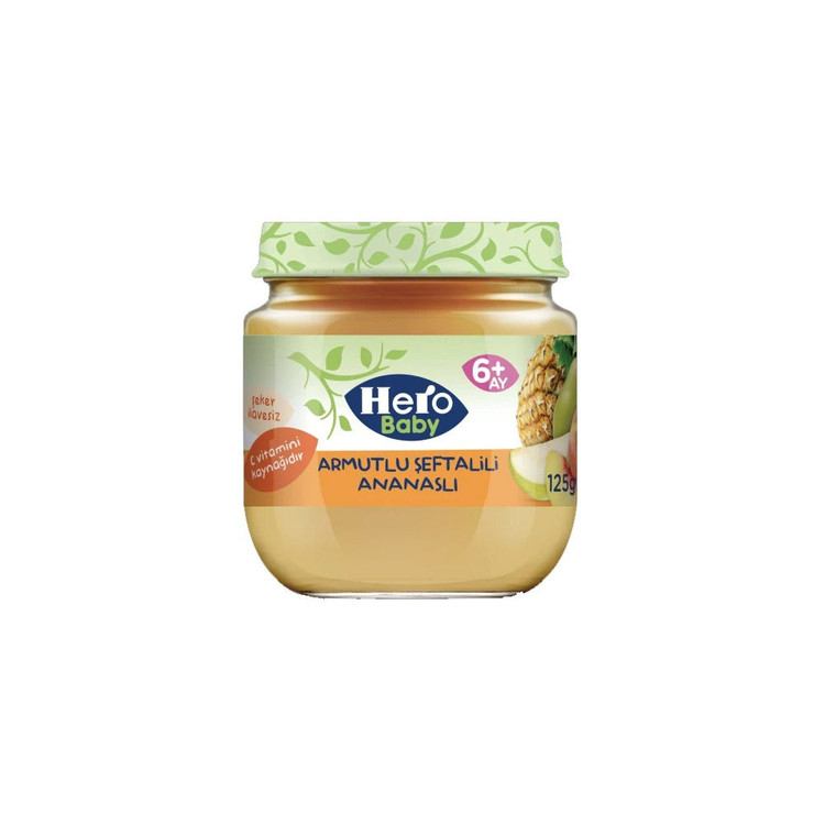 پوره میوه آناناس ، هلو و گلابی هرو بیبی Hero Baby حجم ۱۲۵ گرم