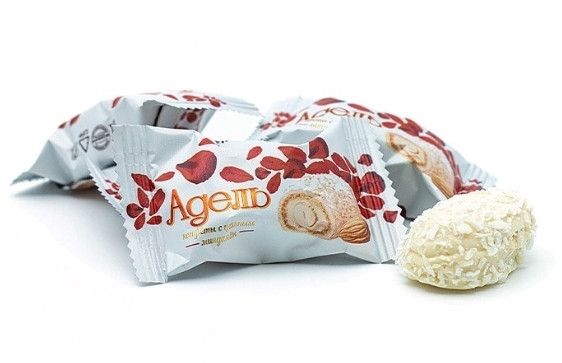ویفر با مغز کرم خامه ای و بادام و روکش شکلات سفید آدل آکوند AKKOND АДЕЛЬحجم ۵۰۰گرم