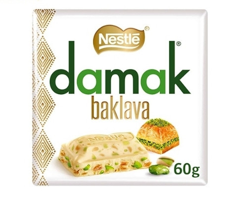 شکلات سفید داماک با مغز باقلوا و پسته 60 گرم نستله