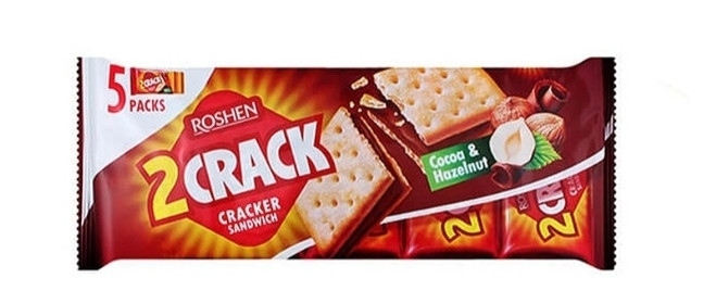 کراکر ساندویچی توکراک بامغز کرم شکلاتی و فندق بسته 5تایی 235گرم روشن