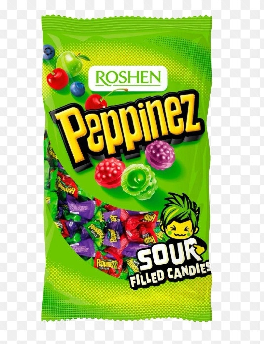 آبنبات ترش مغزدار با سه طعم میوه ای مختلف پپینز روشن وزن 1کیلوگرم ROSHEN Peppinezzz