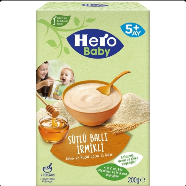 غذای کمکی هرو بیبی گندم با عسل و شیر200 گرمHero Baby Sütlü Ballı İrmikli(تاریخ دار و اصل)
