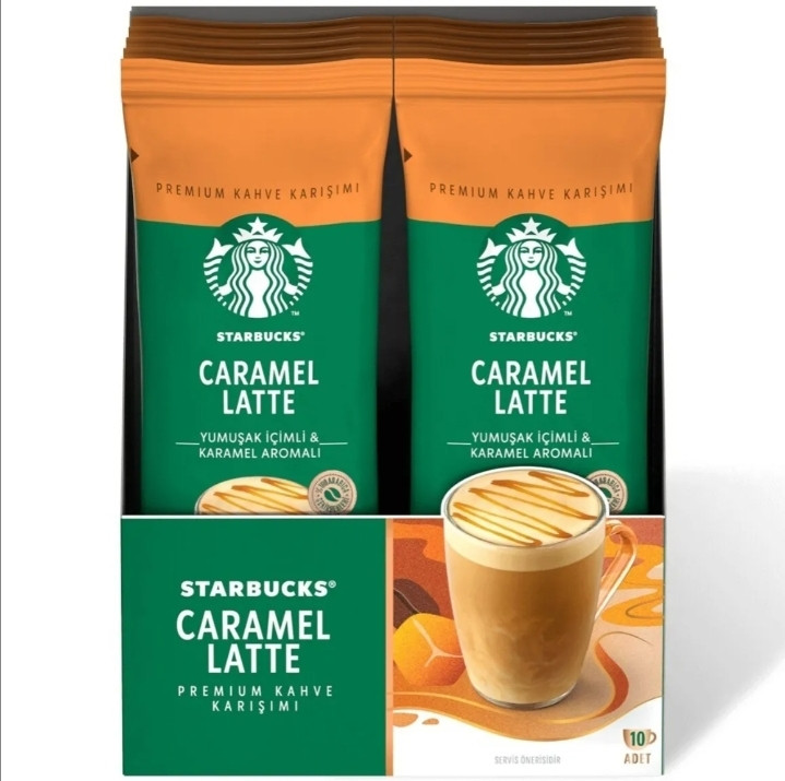 کافی میکس کارامل لاته استارباکس، با ارائه بستههای 10 عددی ساشه، تهیه یک فنجان قهوه کاراملی لاته را در هر مکانی آسان و سریع کرده است. کافی است محتوی ساشه را در آب جوش حل کنید و از نوشیدنی گرم و دلچسب خود لذت ببرید.