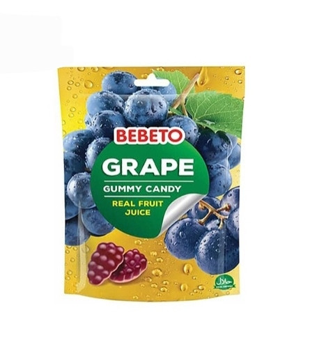 پاستیل انگور تهیه شده با آب میوه طبیعی 60 گرم ببتوBEBETO Grape Gummy Candy Real Fruit Juice 60G