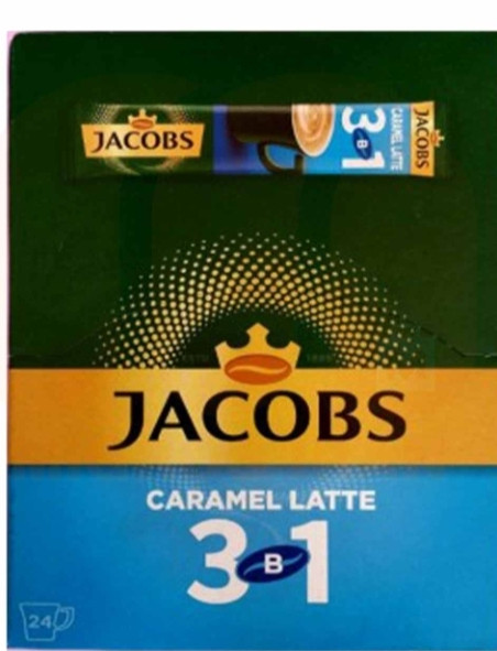قهوه فوری 3 در 1 کارامل لاته جاکوبز Jacobs Caramel محصولی حاوی 24 عدد ساشه است که توسط شرکت جاکوبز تولید و عرضه می گردد، این قهوه فوری از ترکیب دانه های قهوه مرغوب عرییکا و ربوستا تهیه شده است و دارای عطر بسیار و طعمی دلچسب می باشد. این قهوه فوری دارای طعم کاراملی می باشد.