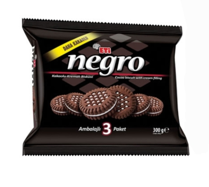 بیسکویت کاکائویی با مغز کرم شیری اتی Nero وزن 300 گرم