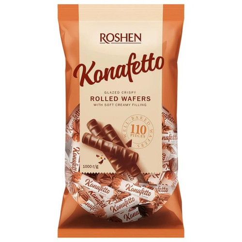 شکلات ویفر رولی با مغز کرم شیری و روکش شکلاتی کنافتتو بیانکو روشن KONAFETTO bianco Roshen۶۴۰٬۰۰۰ تومان
